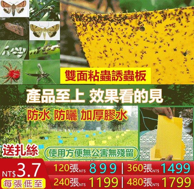 11分鐘前種菜養花不會用打農藥!物理防蟲「雙面粘蟲板」不怕水、不怕曬,粘性超強。花園、果園無需打農藥。室內,院子都可以使用! - 雙面粘蟲板 超值價 360張裝入僅需 NT$1499