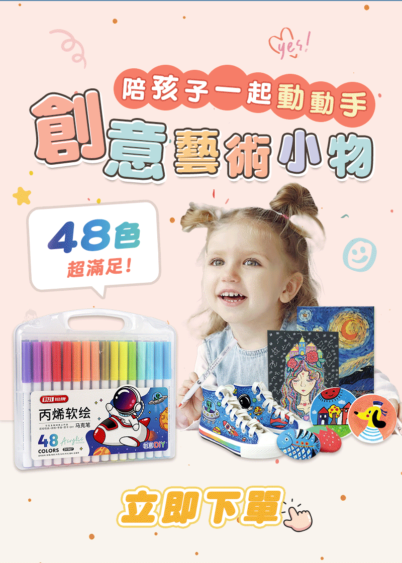 2分鐘前丙烯彩繪馬克筆 超強覆蓋力,萬物材質皆可畫,專為兒童研發,輕鬆擦拭不卡色 - 【兩套】丙烯彩繪馬克筆 (48色)NT$880